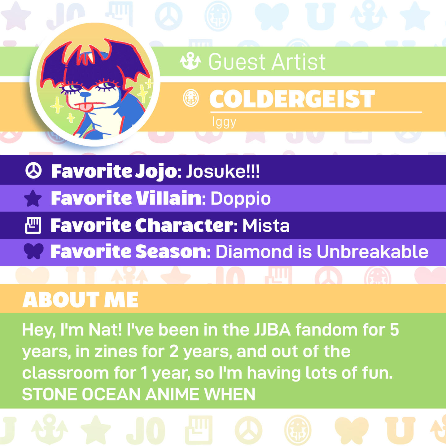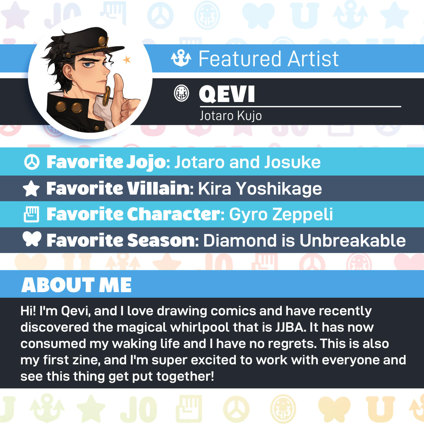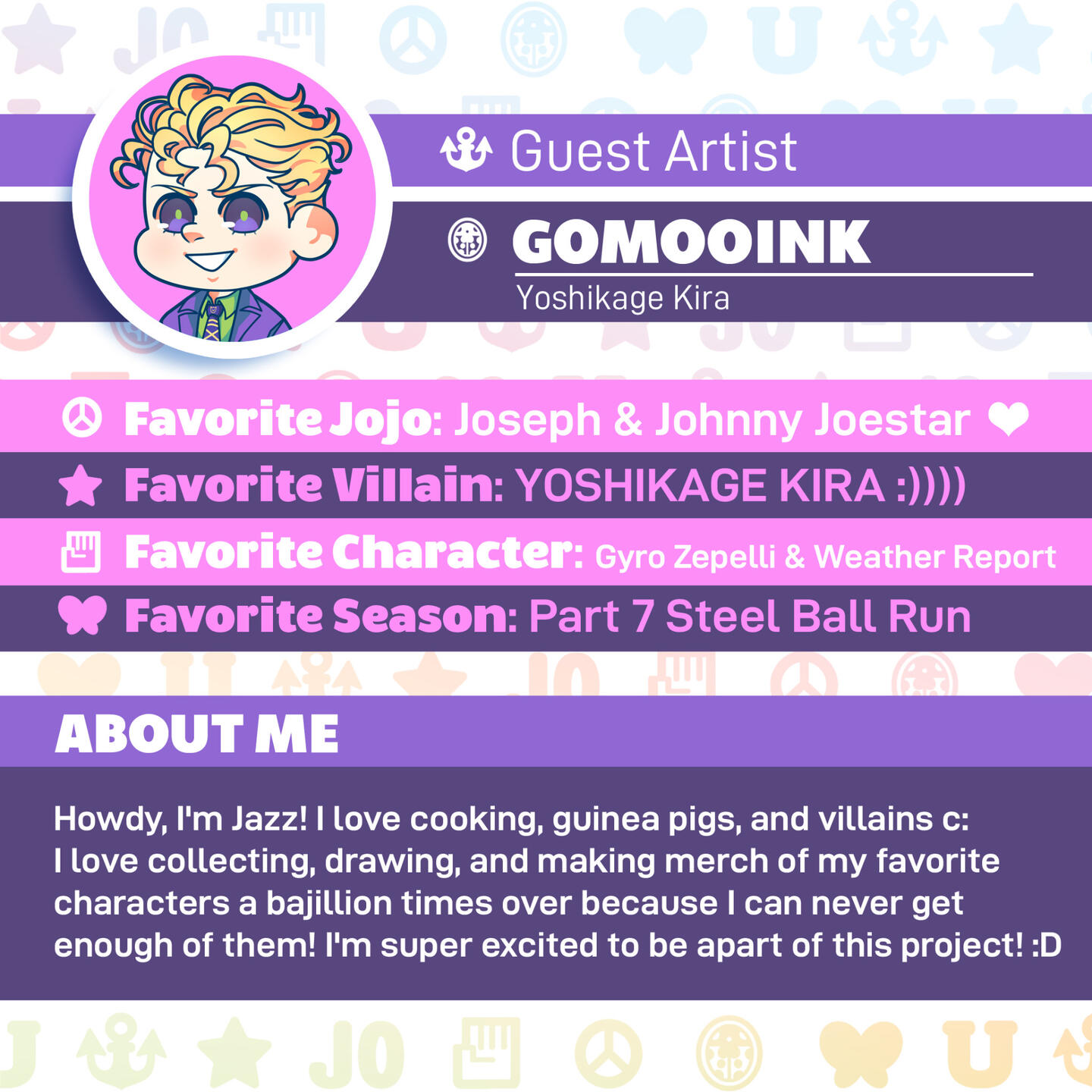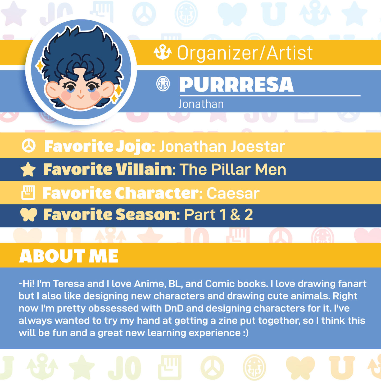 Tobi2moodring and Purrresa have teamed together to create a fanart zine of JJBA in an school setting! With an amazing team of guest artists and soon to be featured artists, this zine will be a hit for any jojo fan.