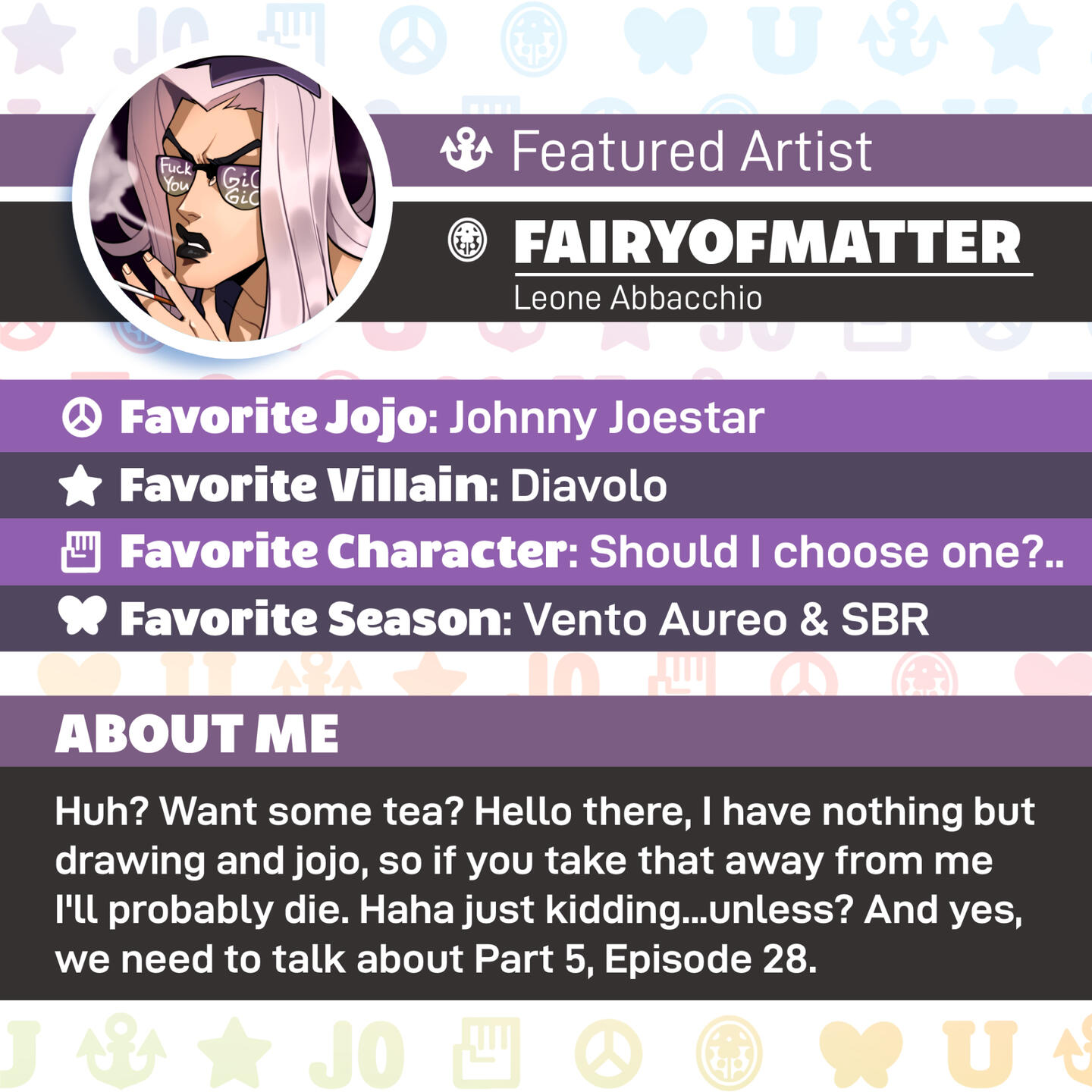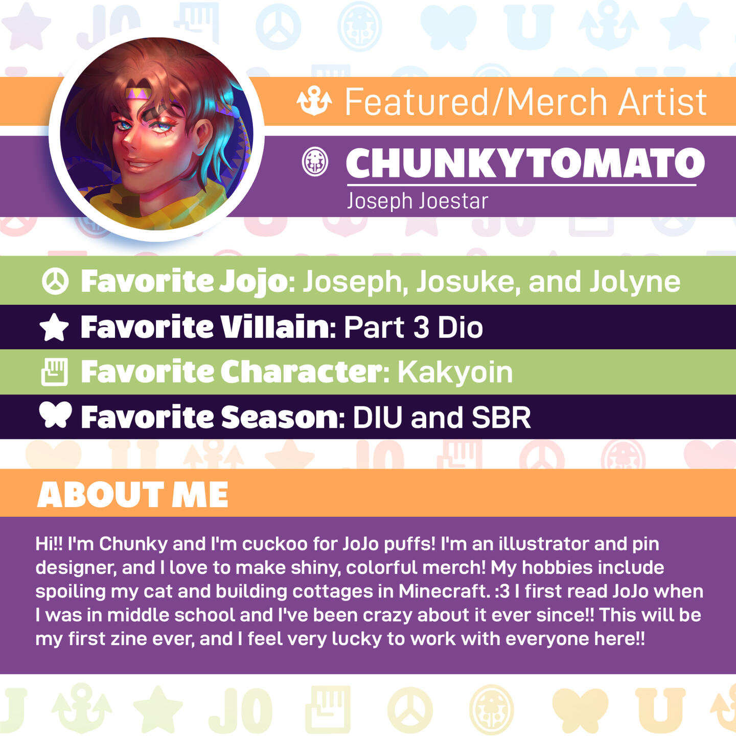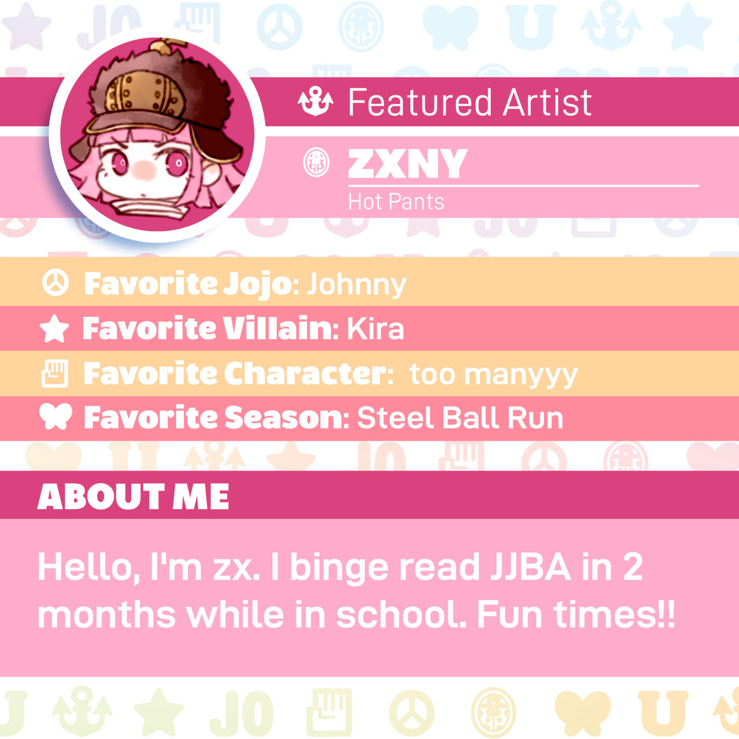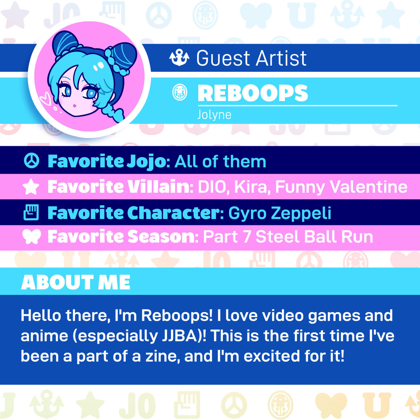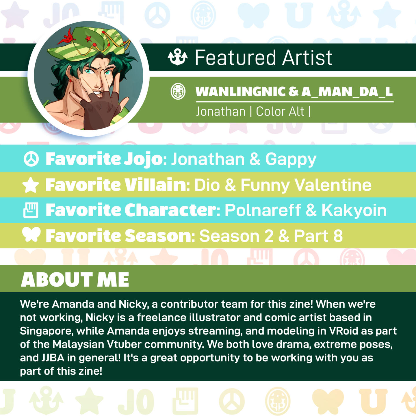 Tobi2moodring and Purrresa have teamed together to create a fanart zine of JJBA in an school setting! With an amazing team of guest artists and soon to be featured artists, this zine will be a hit for any jojo fan.