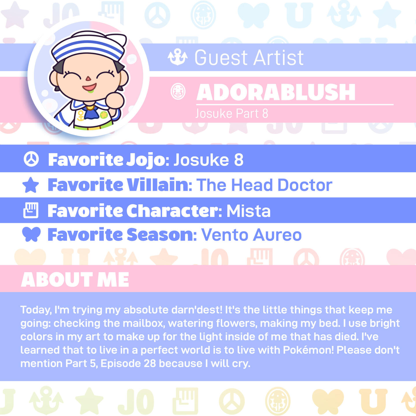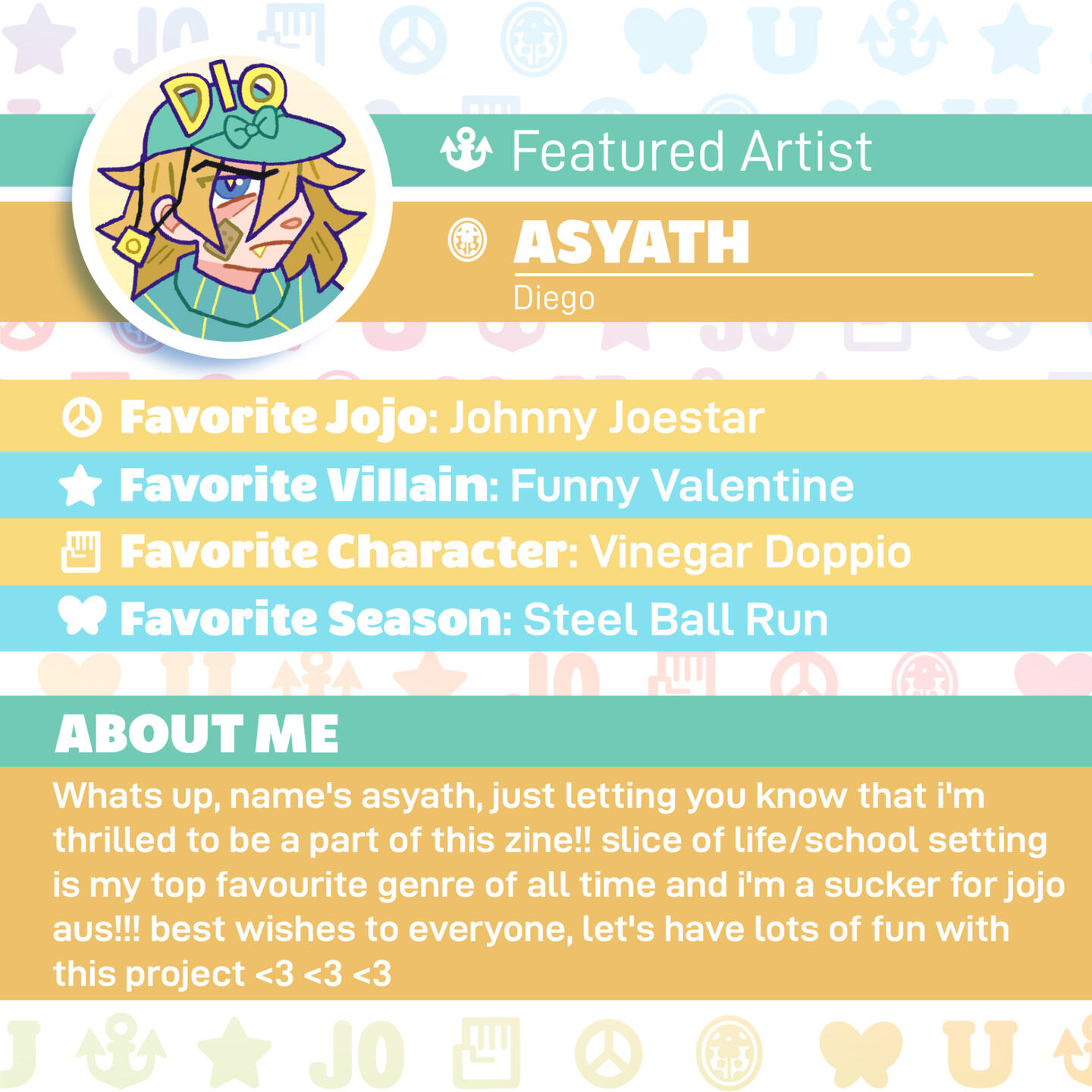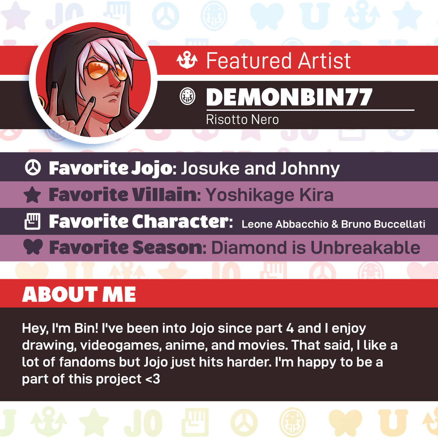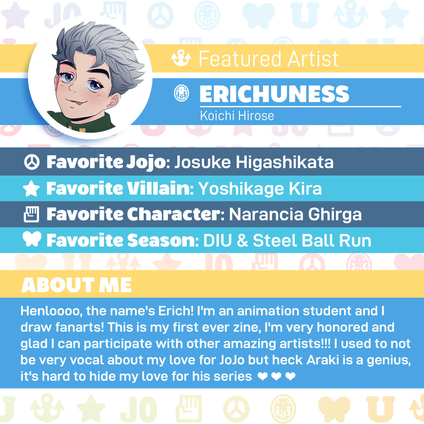 Tobi2moodring and Purrresa have teamed together to create a fanart zine of JJBA in an school setting! With an amazing team of guest artists and soon to be featured artists, this zine will be a hit for any jojo fan.