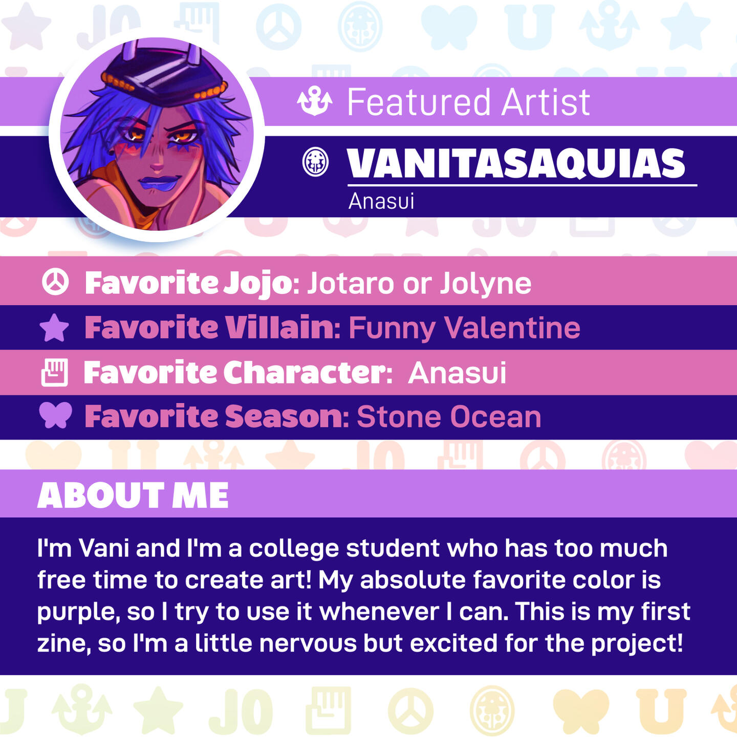 Glad you asked! Zines can differ from person to person but for us it will be almost like an artbook. We have 50 contributors that will each create a stunning piece of jojo art for the pages of the book. There will be four panel comics, full color illustrations, the perfect gift for any jojo lover! We offer physical zines or digital .pdf zines for those who want to enjoy the art but don't have the space for another book on the shelf~